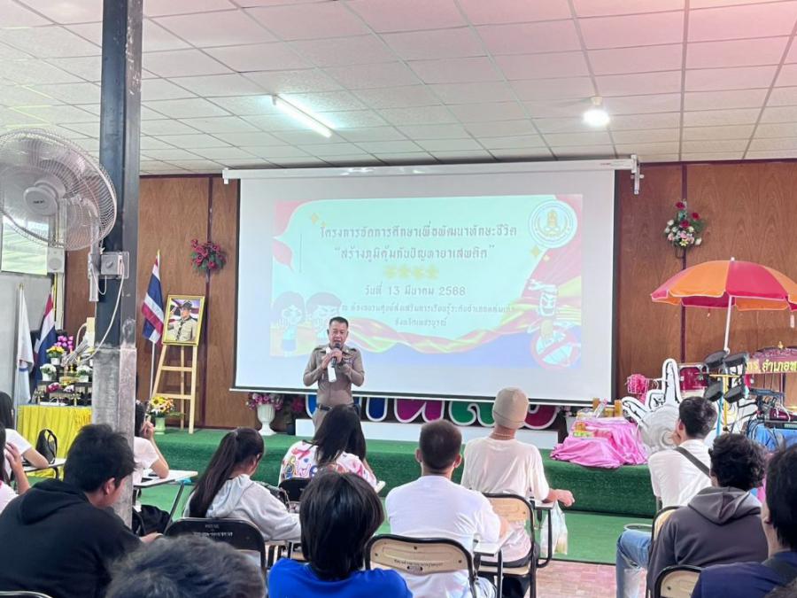 วันที่ 13 มีนาคม 2568 ศูนย์ส่งเสริมการเรียนรู้ระดับอำเภอหล่มเก่า ดำเนินการจัดโครงการจัดการศึกษาเพื่อพัฒนาทักษะชีวิต ?สร้างภูมิคุ้มกันปัญหายาเสพติด? โดยมีนายประภาส โป้แล ผู้อำนวยการ สกร.ระดับอำเภอหล่มเก่า เป็นประธานกล่าวเปิดโครงการฯ และ พ.ต.ท.รุ่งธรรม จันกวด สวป.หล่มเก่า ร.ต.อ.สมชาติ น้อยแสงจันทร์ รองสารวัตรธุรการ สถานีตำรวจภูธรหล่มเก่า และ ร.ต.ท.ชัยรัตน์ ฤทธิ์เม้า รองสารวัตรป้องกันปราบปราม สถานีตำรวจภูธรหล่มเก่า เป็นวิทยากรให้ความรู้แก่ผู้เข้าร่วมอบรม ณ สกร.ระดับอำเภอหล่มเก่า อำเภอหล่มเก่า จังหวัดเพชรบูรณ์ S:0